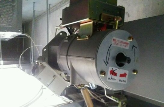 某公共施設で「シートシャッター」と呼ばれる設備の点検です。天井裏に設置されたシャッター起動部の本体です。ここは「点検口」と呼ばれる作業の為の開口が大きく、非常に点検しやすい環境が整っています。物件によっては「設置後のメンテナンス」をあまり考えていない所も多く、この様に起動部本体の全容がハッキリと確認出来ることは稀なことです。(H30年1月撮影)