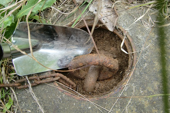 「救助袋」と呼ばれる避難器具に使用する取り付け金具です。救助袋自体は建物内に設置されますが、いざという時に使用する際には窓から救助袋を出し、地上の人々が袋の一部をこの金具に固定することで初めて使用可能となります。なので袋だけではなくこの金具もいざという時にちゃんと使用出来るよう点検の際には中を確認し、必要に応じて清掃なども行います。点検でも見落としがちなので注意が必要です。(H28年8月撮影)