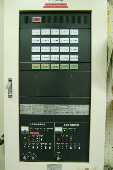 現在ではもう少なくなりつつある旧式の「P型1級火災受信機」です。現在の受信機に比べて割と簡素な造りではありますが、しかしこちらの方が新しいものよりも操作しやすい部分もあります。特に最近の受信機のスイッチは感触があまりなく「ちゃんと押せてるのかな…?」と不安になることもありますが、この旧式の受信機の場合そういったことがありません。つまみを下げることにより「ON」、「OFF」を切り替えられるので感触は確かです。(H28年7月8月撮影)