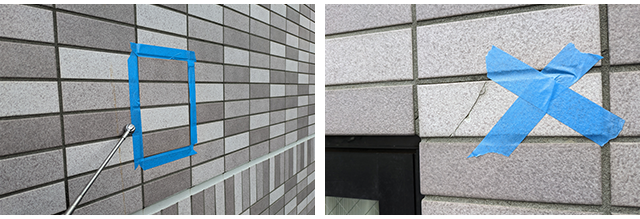 平成20年度国土交通省告示第282号により、タイル貼り、石貼り、またはモルタル貼りなどの建築物(戸建住宅は対象外)においては概ね6カ月から3年以内に手の届く範囲での打診調査に加え、10年に1度の全面打診の実施が原則とされています。